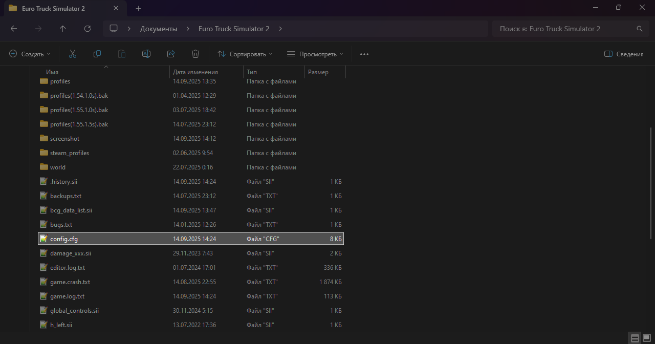 Откройте папку: Документы\Euro Truck Simulator 2, найдите файл